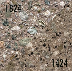 Slag, a byproduct from the copper smelting process, can be added to the concrete mix as shown in the 1400 color series. This results in a peppered iridescent look that adds interest, depth, and shine to the paved area. The 1800 Color Series does not contain slag. Both color series are available in a light, medium, or heavy sandblast to show more of the aggregate, depending upon the design specifications.