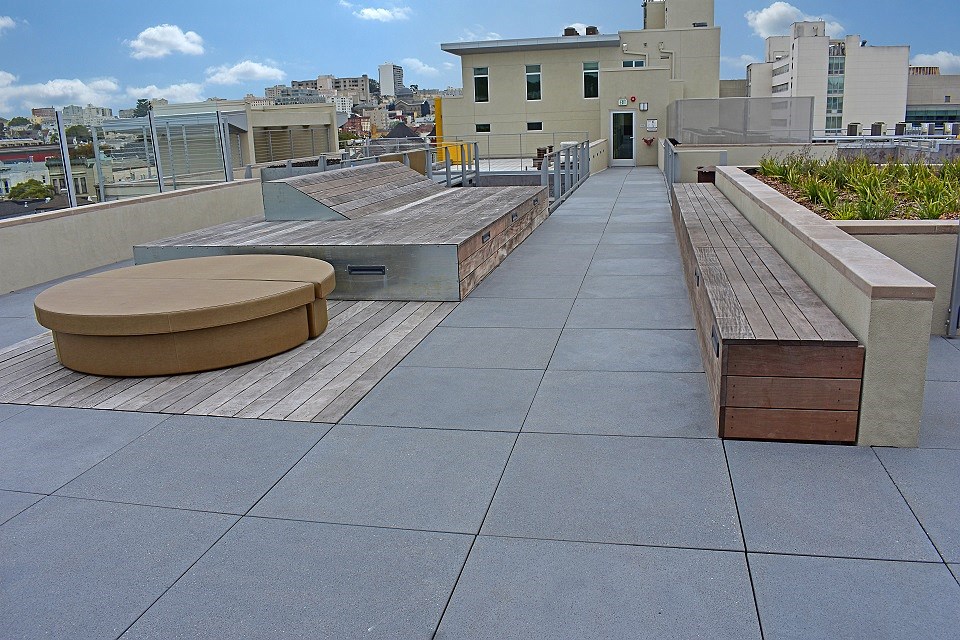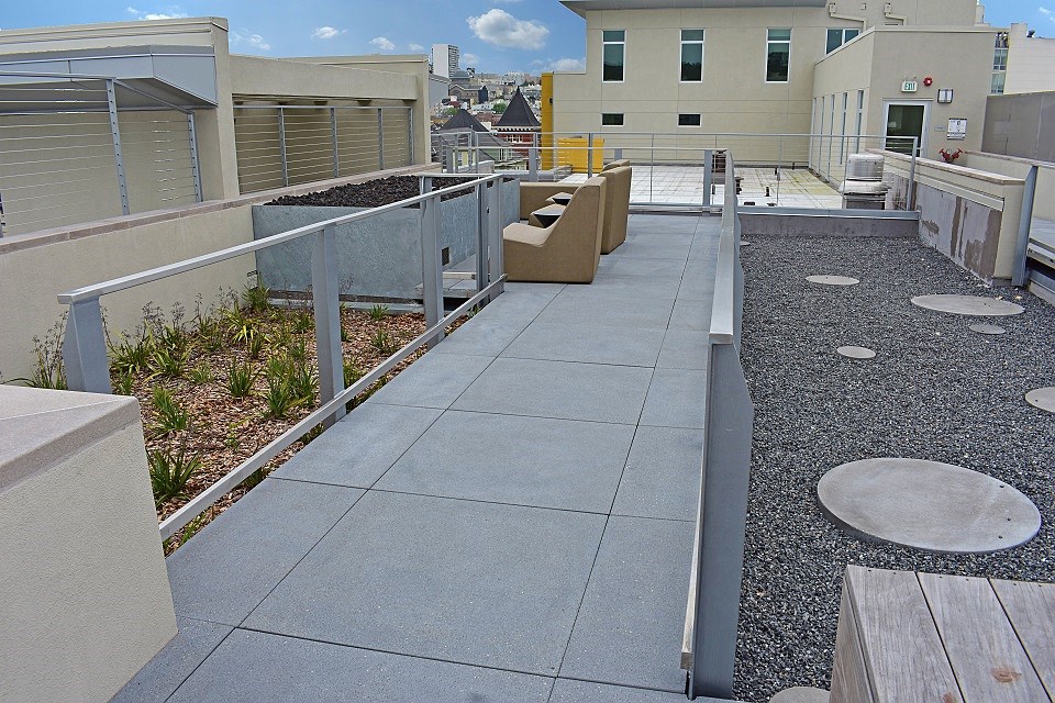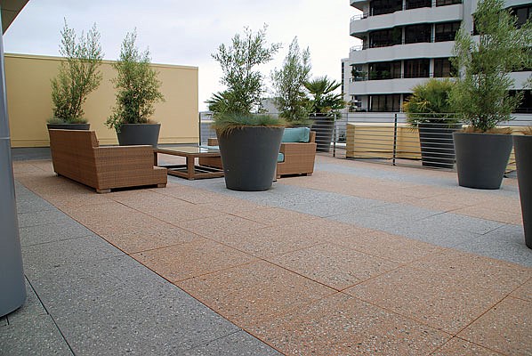 Pedestal Set Roof Pavers, a steel reinforced extension of our Large Scale CalArc Paver line, utilize an independent pedestal system installation for roof deck applications. Welded wire mesh eliminates the need for additional support, other than pedestals. The result is the same unique, modern, sleek look of our Large Scale Pavers used to line walkways and plazas. Pedestal Set Roof Pavers are available up to 60" in size with the handcrafted elegance found across our entire product line; and they are available in a multitude of sizes as well as all of our standard colors and finishes.