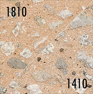 Slag, a byproduct from the copper smelting process, can be added to the concrete mix as shown in the 1400 color series. This results in a peppered iridescent look that adds interest, depth, and shine to the paved area. The 1800 Color Series does not contain slag. Both color series are available in a light, medium, or heavy sandblast to show more of the aggregate, depending upon the design specifications.