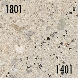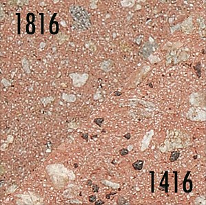 Slag, a byproduct from the copper smelting process, can be added to the concrete mix as shown in the 1400 color series. This results in a peppered iridescent look that adds interest, depth, and shine to the paved area. The 1800 Color Series does not contain slag. Both color series are available in a light, medium, or heavy sandblast to show more of the aggregate, depending upon the design specifications.