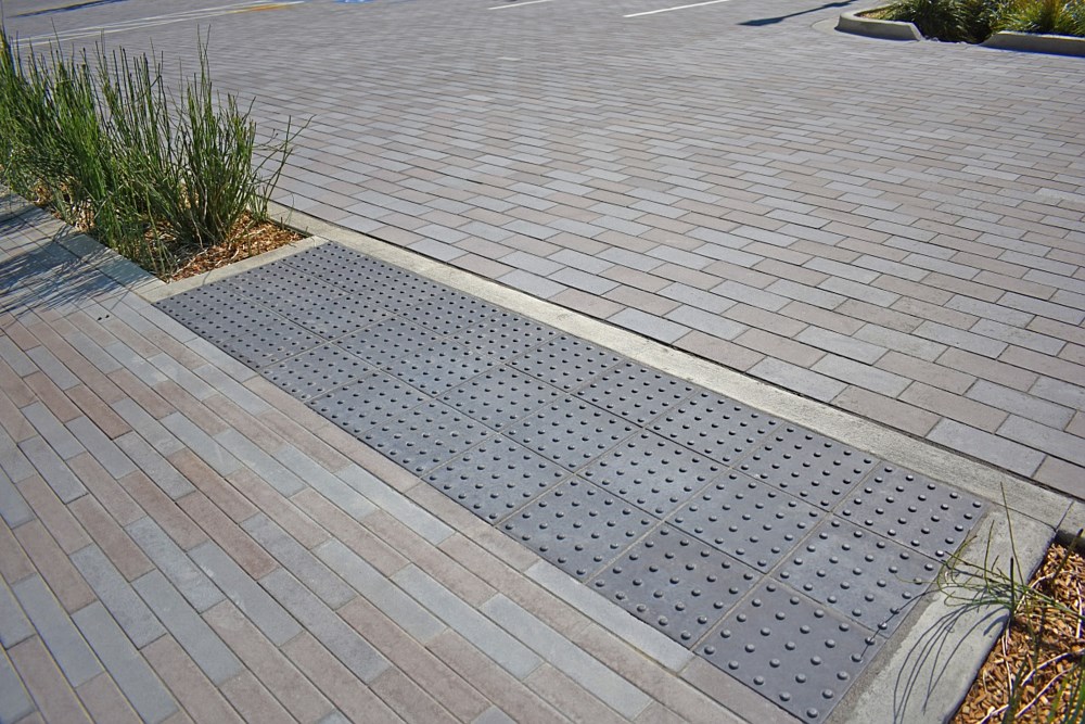 Provide a detectable warning surface in paving transition areas with Stepstone’s Truncated Dome Pavers. Precast concrete Truncated Dome Pavers are integrally colored and are made from hard-rock concrete with minimum compression strength starting at 4,000 PSI. Truncated Dome pavers come in several practical and complementary colors to provide an aesthetic visual and detectable transition.